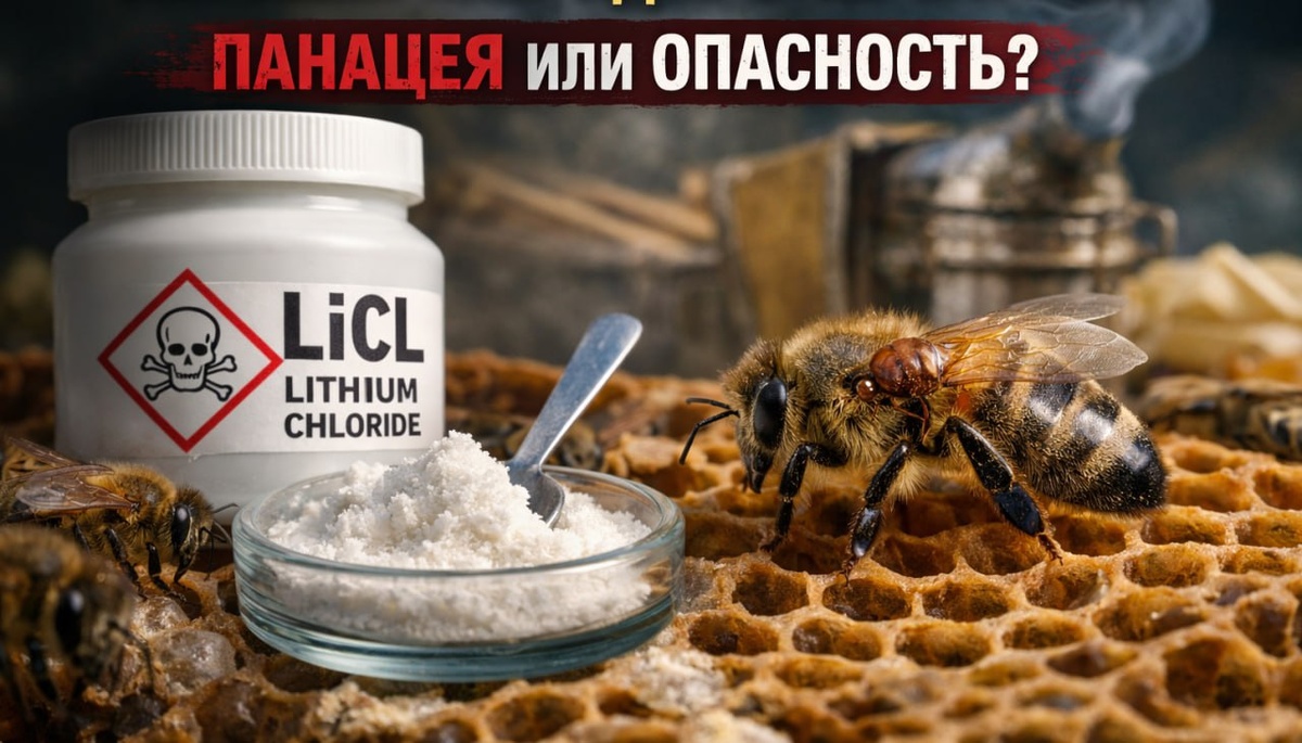 ? Хлорид лития (LiCl) привлёк внимание пчеловодов и исследователей как потенциальное средство борьбы с клещом Варроа. С 2018 года появилось несколько работ, показывающих, что кормление пчёл LiCl способно убивать значительную часть клещей. На первый взгляд, это звучит почти как чудо: система работает через кормление - лучше всего подходит канди и белковая подкормка, эффективность высока, а остатки в мёде кажутся минимальными. Но реальность куда сложнее. Практические испытания показали, что при введении LiCl через подкормку эффективность действительно велика, особенно в семьях без расплода. Однако как только в улье есть расплод, ситуация резко меняется. Исследование 2022 года показало, что при стандартных концентрациях смертность расплода может достигать 60–90 %, а даже короткие курсы не гарантируют полную безопасность. Другие исследования указывают на возможные сублетальные эффекты на взрослых пчёл: стрессовые реакции, изменения поведения и даже влияние на экспрессию генов. Даже с уч