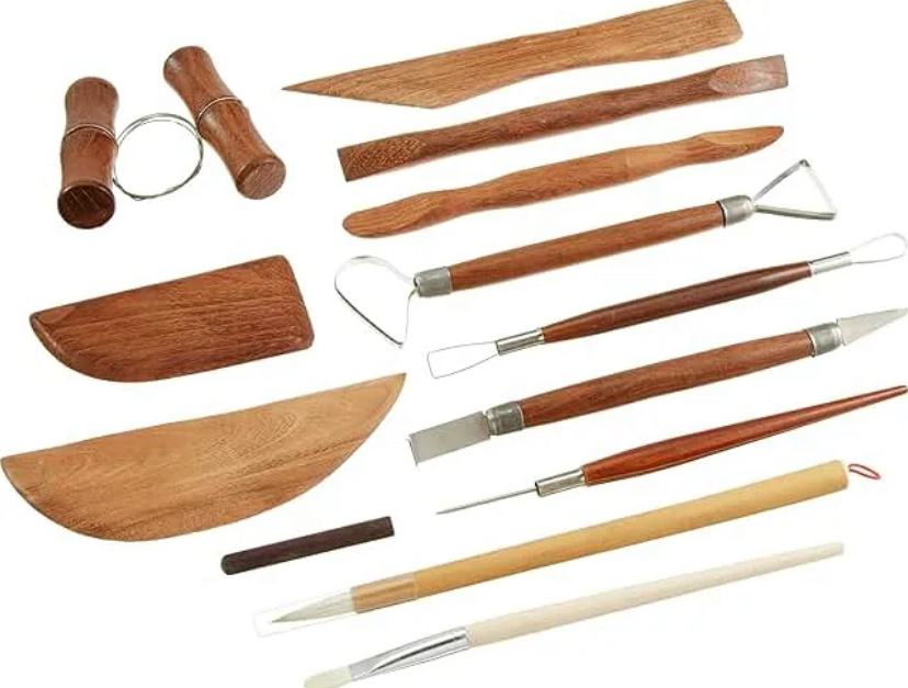 - Набор деревянных стеков — для лепки, снятия лишней глины, создания фактуры. 🔪