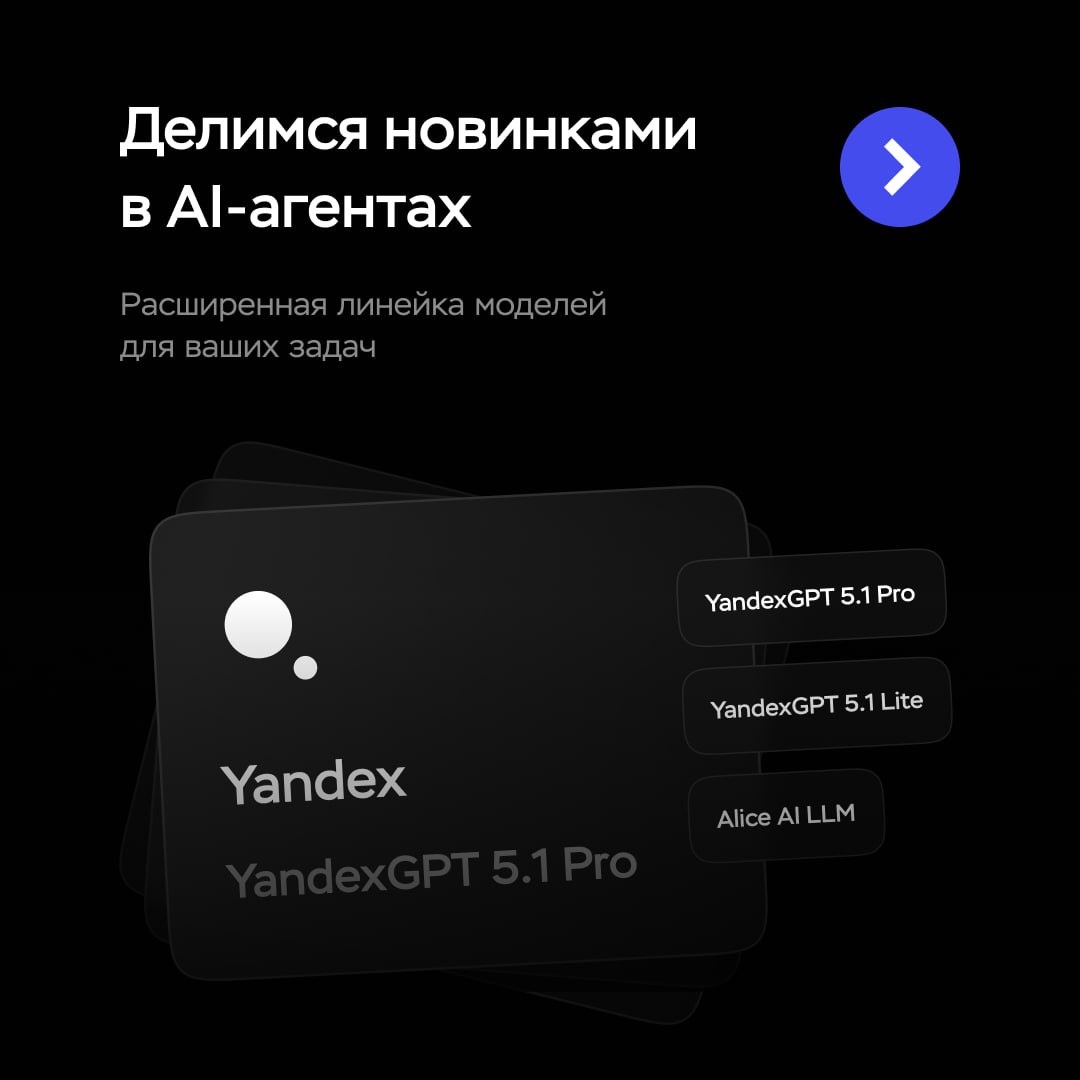 🤌🏻 Расширили линейку AI-агентов новыми моделями от Яндекса, которые подходят для самых разных задач. 1️⃣ YandexGPT 5.1 Pro — отличный выбор для сложных запросов. Лучше понимает контекст, точнее работает в связке с базами знаний. Вариант применения: для агента техподдержки, который знает все о продукте. 2️⃣ YandexGPT 5.1 Lite — баланс скорости и цены. Модель можно юзать для быстрых ответов и инструкций. Вариант применения: короткие чаты или генерация уведомлений. 3️⃣ Alice AI LLM — та самая привычная Алиса. Заточена под живой диалог + отлично справляется с простыми запросами. Вариант применения: чат-бот, настроенный под человеческое общение, например, для e-commerce. 🎁 Бонусом, как и обещали, добавили Qwen 3 Plus Reasoning, которая поддерживает огромный контекст (до 256к токенов). Подключить модели к своим чат-ботам →