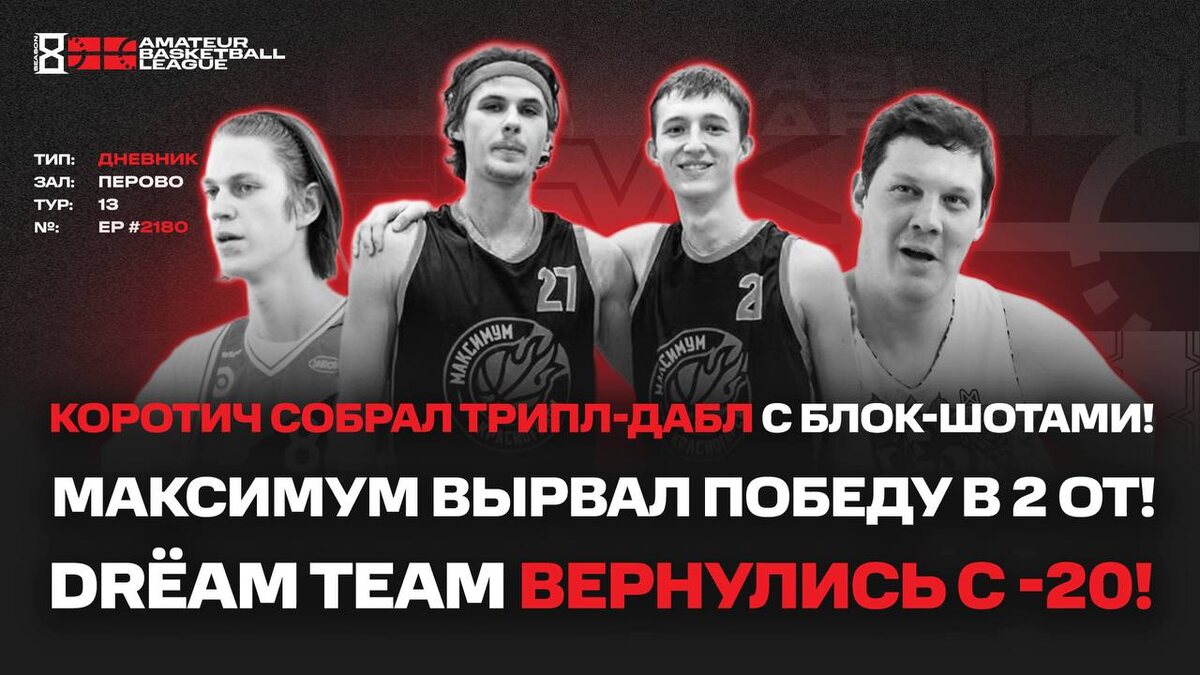 ) 😕Коротич собрал трипл-дабл с блок-шотами! 😒Максимум вырвал победу в 2 ОТ! 😐DrЁam Team вернулись с -20! 19:30 📱Ссылка 📱Наш сайт 📱Группа Вконтакте 1️⃣@ABL Moscow