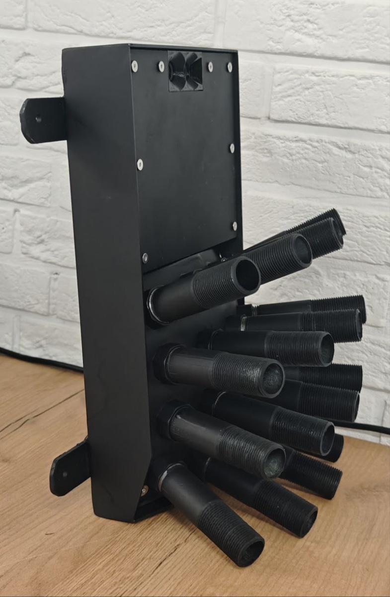 России. Назначение — прикрытие бронетехники, грузовых и эвакуационных машин, а также тележек и роботизированных платформ от атак FPV-дронов. Принцип работы следующий: после включения посредством терминала/тумблера из кабины комплекс переходит в режим непрерывного оптического сканирования ближнего сектора с помощью датчиков ИК-диапазона и видимого оптического диапазона. Когда беспилотник, приближающийся к машине, входит в сектор огневого воздействия 16 противодроновых мортир на установленной дистанции, система автоматически инициирует срабатывание штатного 12-калиберного охотничьего патрона с дробовым зарядом в одной из этих мортир. После попадания в дробовое поле цель с высокой долей вероятности выходит из строя, а транспорт продолжает движение без остановки. Также вместо 12-калиберных патронов теоретически могут быть применены патроны сеткомёта. В данном случае комплекс станет на порядки более безопасным для пребывающей вблизи бронетехники пехоты. При начале массового производства