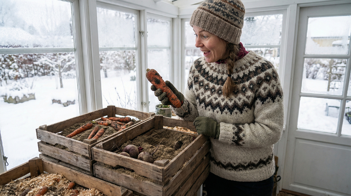 Как я храню морковь и свёклу до апреля без погреба: метод «2 слоя» в ящиках, который экономит место и сохраняет сочность Помню, как радовалась в октябре, глядя на ведра с морковью и свёклой. А к февралю эта радость превращалась в разочарование. Открываю пакет - половина корнеплодов мягкие, как резиновые игрушки. Другая половина покрылась странными пятнами. Выбрасывала килограммами то, что выращивала с весны. Погреба у меня нет, а подвал настолько холодный и сырой, что овощи там чувствуют себя ещё хуже. В холодильник много не положишь - там и без того тесно. Я уже смирилась, что свежие корнеплоды - это только до Нового года. Дальше начинается лотерея: повезёт или не повезёт. Всё изменилось три года назад, когда сосед Михалыч показал мне свои запасы в апреле. Я чуть не упала, увидев морковь такой, будто её только что с грядки выкопали. Хрустящая, сочная, без единого мягкого бока. Михалыч объяснил просто: корнеплодам нужны две вещи одновременно. Влажность, чтобы не высохли. И воздух, чтоб