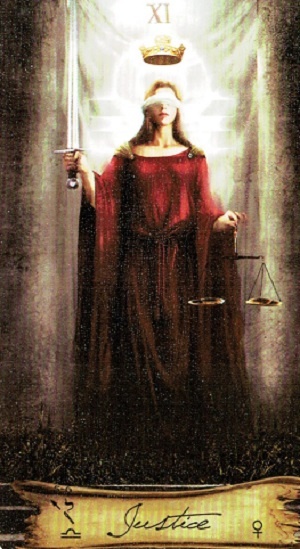 Иерофант представляет закон духовный, догматический, основанный на вере и традиции. Справедливость представляет закон светский, этический, основанный на разуме и равновесии.