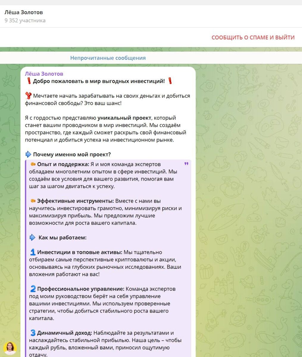 Мой канал один из самых больших в теме инфобиза в России. Поэтому каждый день падают тонны спама. И мошенники постоянно активны. Вот смотрите на скриншоты, прямо сейчас собирают какие-то фейковые инвестиции от моего лица 😂😂 Кстати, в будущем, думаю вообще закрыть комментарии, они во многом изжили себя в телеге (да и спама вам меньше в личку будет сыпаться). На эфире послезавтра расскажу как работать с аудиторией без них и не проседать в доходе.