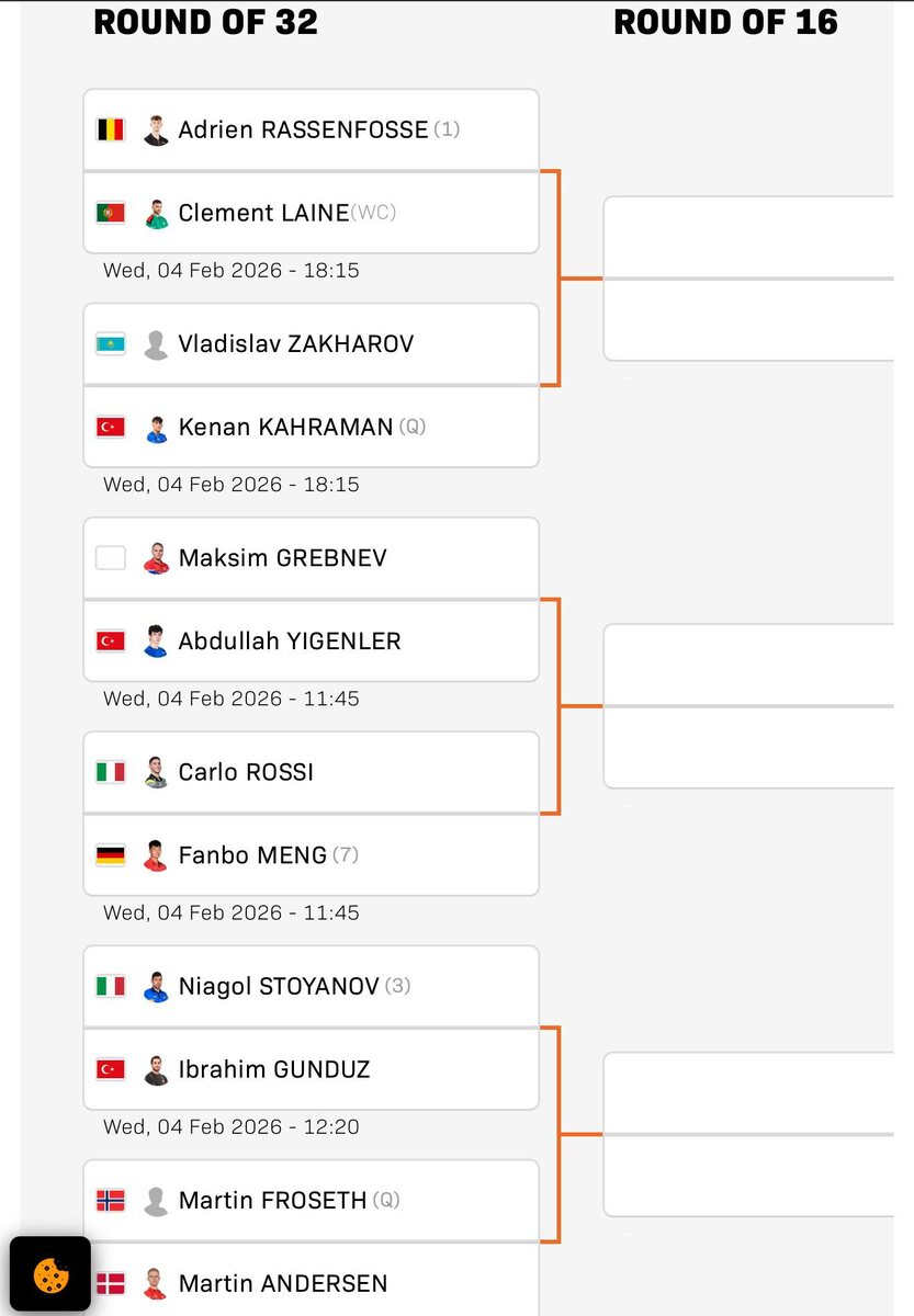 😳 Основная сетка WTT Feeder Cappadocia 2026! WTT-шная судьба опять забавляется: 1) Два российских бронзовых призера Фидеров Евгений Тихонов и Никита Артеменко сразу же против друг друга; 2) Драматично разыгранная смешанная пара Тихонов/Панфилова vs Виноградов/Слаутина вновь сталкиваются в первом же круге через несколько дней; 3) На первом же турнире WTT, где участвует и Россия и Украина, Валерия Щербатых в первом же круге попадает на Анастасию Димитренко. UPD ошибочка, в Стамбуле ещё Маргарита Песоцкая была в сентябре. Время московское. Трансляции на ютуб-канале WTT