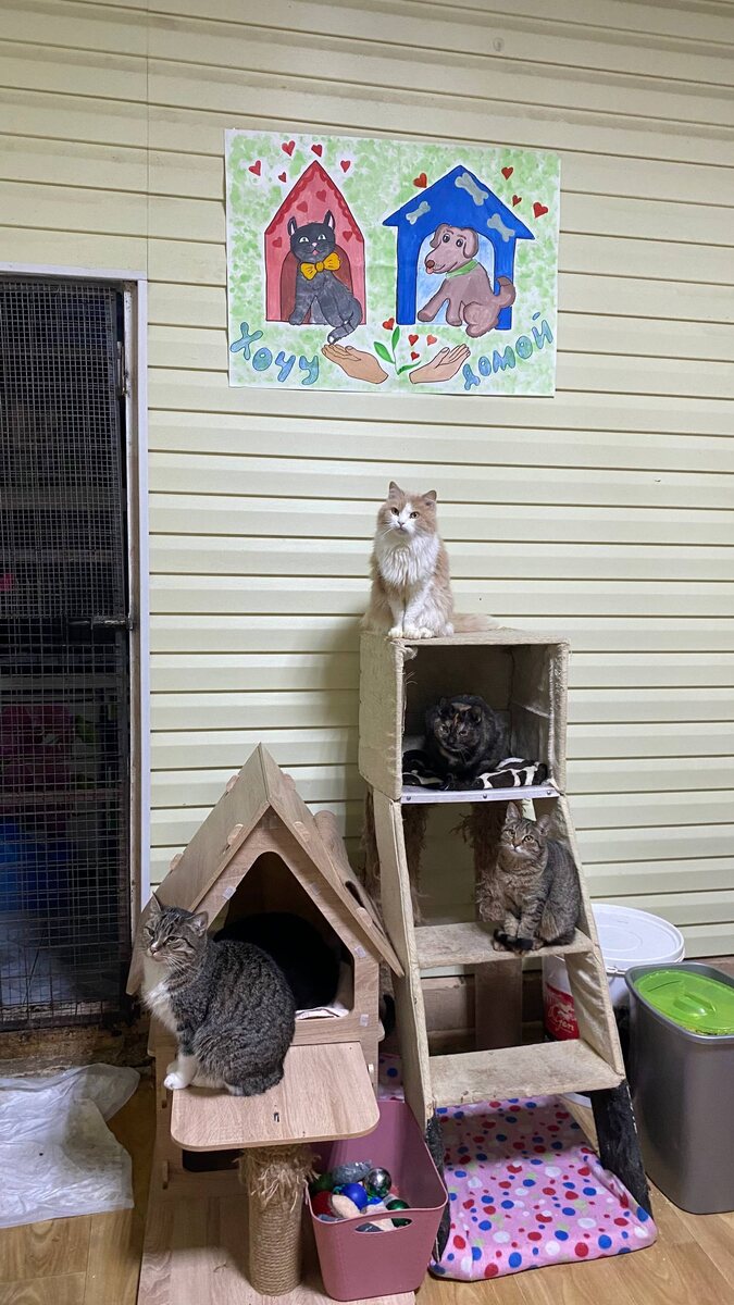 Железногорска 🧡 Теперь он украшает стены нашего приюта 🙂 А ещё ребята и родители подарили котикам корм 🥳 Замечательные, добрые детки и мудрые родители есть в нашем городе!