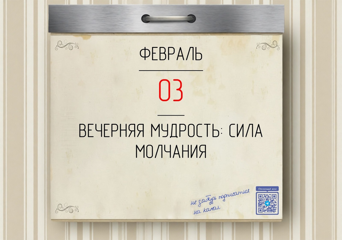 В завершение дня, посвящённого преподобному Максиму Греку, обратимся к его собственному наставлению: «…Возлюби молчание, боясь той многогрешной пропасти, в которую влечет необузданный язык». Эта глубокая мысль напоминает нам о великой духовной и практической силе воздержания в слове. В православной аскетике молчание (исихия) — это не просто отсутствие речи, а собирание ума, охрана сердца от пустословия, осуждения и гнева. Именно в тишине рождается подлинная молитва и ясность мысли. В контексте нашей повседневности этот совет звучит удивительно современно: осознанно относиться к своим словам, давать себе паузу перед ответом, ценить тишину как источник внутреннего мира. Вечер — самое подходящее время, чтобы «унять» внутренний диалог, отложить суетные разговоры и обратиться к тихому размышлению или молитве. Пусть этот вечер будет тихим и глубоким. Доброй ночи! Поделись этой мудрой цитатой. #ВечерниеРазмышления #ДуховнаяМудрость Подписаться https://t.me/+NbMdPCbn1F40Y2Ni