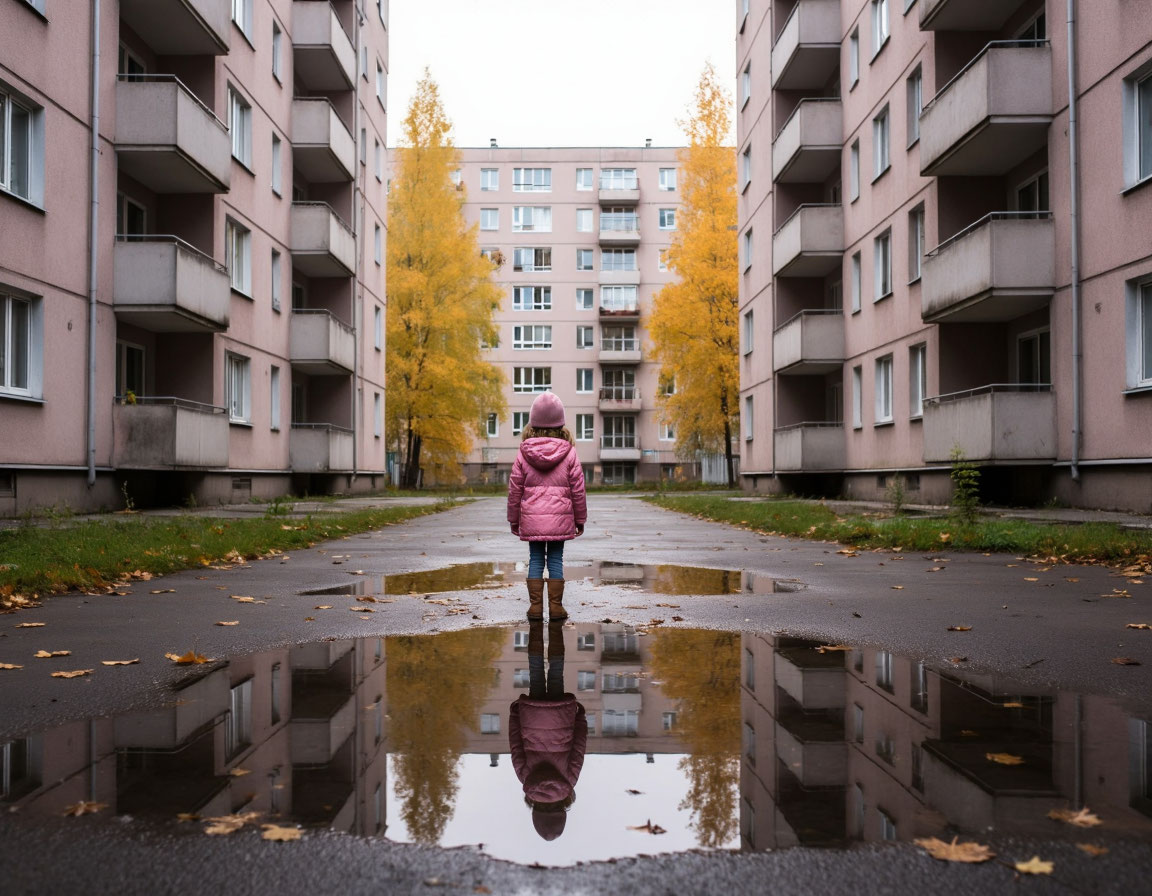 На тротуаре, чуть поодаль, стояла маленькая девочка. На вид ей было не больше четырех-пяти лет. Её тонкая розовая курточка явно не предназначалась для такой погоды, а шапочка была надета кое-как, оставляя уши незащищёнными. Малышка была без перчаток, её руки покраснели от холода, пальцы слегка подрагивали. Она смотрела вниз, на разбитую ледяную корочку, из‑под которой просочилась вода, намочив ботинок. В глазах стояли слёзы – то ли от неожиданности, то ли от обиды, что прогулка так неудачно началась.