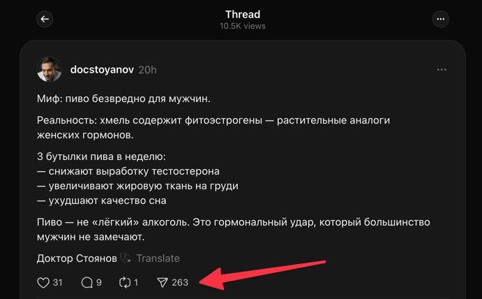 За счёт репостов контент в соц.сетях летит... алгоритм видит, что контент всё больше людей цепляет и оставляет на платформе и форсит его дальше. Поэтому заходит всякий треш. Люди отправляют его друг-другу. «Смотри какая дичь...» Ну или надо очень в тему попасть с экспертным, который многие захотят сохранить переслав себе например во второй аккаунт.