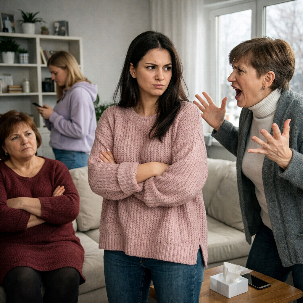 Когда я вошла в квартиру матери с пакетами из супермаркета, первое, что бросилось в глаза — ее лицо. Такое выражение я видела только однажды, когда отец ушел к другой. Тетя Оля сидела на диване, скрестив руки на груди, а двоюродная сестра Лена нервно листала телефон, не поднимая глаз.