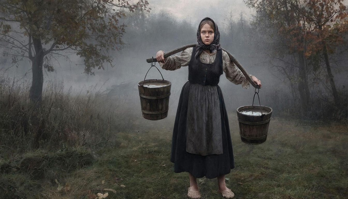 Осень в Гнилом Куте умирала долго и мучительно. Она не вспыхивала золотом, как в других краях, а сразу ложилась на землю бурой гнилью, пропитывала воздух запахом прелых листьев и стоячей воды. Солнце, если и показывалось, было бледным, словно бельмо на глазу слепого старика. Я сидела на крыльце мельницы, обхватив колени руками, и слушала. Для всех остальных в деревне я была пустой. «Блаженная», — говорили бабы, крестясь. «Немая дура», — сплевывала мельничиха Аграфена, проходя мимо с тяжёлыми ведрами. Они думали, что раз у меня нет голоса, то и внутри у меня — тишина да пустота, как в дырявом горшке. Если бы они знали. Мир не замолкал ни на секунду. Он кричал, стонал, шептал и жаловался. Я слышала не людей — их пустые слова пролетали мимо, как сухие листья. Я слышала вещи. Слышала, как ноет старая ступенька подо мной: «Тяжело... сгнила я... скоро тресну...» Слышала, как в глубине дома визжит от боли чугунок, который Аграфена скребла ножом слишком сильно. Слышала, как за околицей, в лесу