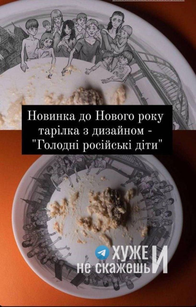 Давненько не заходила речь о специфической ментальности - западенской, но спроецированной во многом и на население таких вполне русских городов, как Киев. Что тут можно сказать? Что это отнюдь не только игры "элит", как мы помним, поедавших тортик в виде младенца надлежащей национальности. Это - производство, так что - не будь спроса, не было бы и предложения. Конечно, нас особо уже такой тарелочкой (2022 год производства) не удивишь, после, к примеру, вот этого: Ну, или вот этого: Много там всякого такого, причудливого. И всё как-то в одном ключе. Некоторые задаются вопросом: при любой ненависти - как можно есть с такой тарелки? Но на самом деле вопрос праздный. Если можно есть тушенку, мечтая, что это мясо врага, то такая тарелка это ещё легкий вариант, даже без антропофагии. Меня заинтересовал другой нюанс. У тарелки-то нашелся в интернете оригинал! Вот, как он выглядит: Заимствование, да. Но сколь творчески переосмысленное! Как мы понимаем, исходная тарелочка создавалась с самым