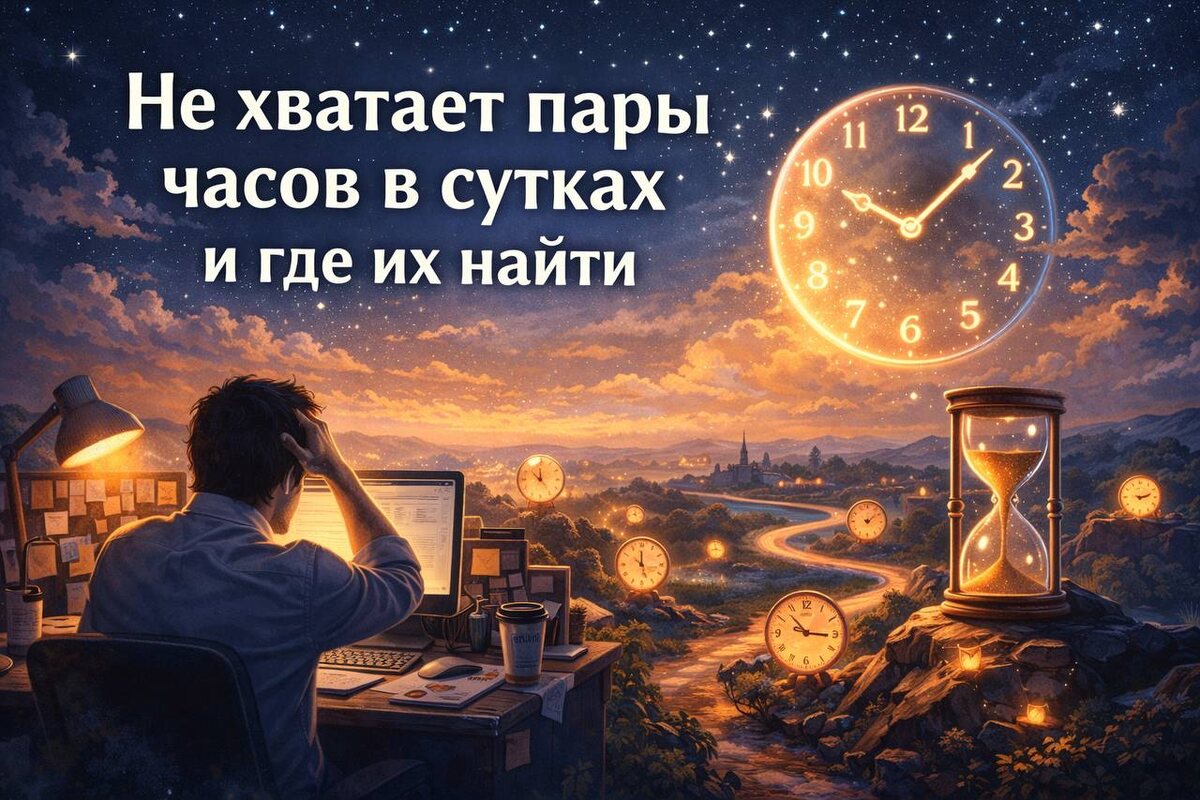 Иногда кажется, что в сутках катастрофически не хватает пары часов. День начинается с ощущения спешки — и заканчивается ею же. Списки дел распухают, время утекает сквозь пальцы, а чувство удовлетворения всё равно не приходит. Мы говорим себе: «Если бы у меня было ещё пару часов — я бы наконец всё успел». Но время — странная субстанция. Его как будто никогда нет, но на что-то по-настоящему важное оно вдруг находится. Возникает из ниоткуда, как только появляется смысл.