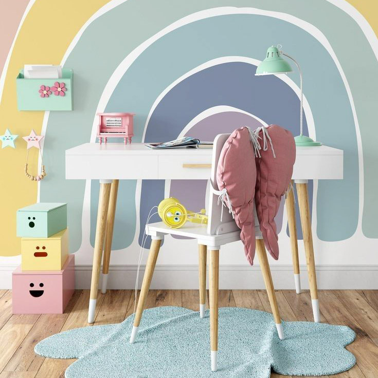 От трёх до семи лет на первый план выходит фантазия, желание что-то менять. Посмотрите на моющуюся краску, виниловые обои с детскими мотивами, грифельные/магнитные панели. И уже можно попробовать обсудить дизайн с ребёнком.