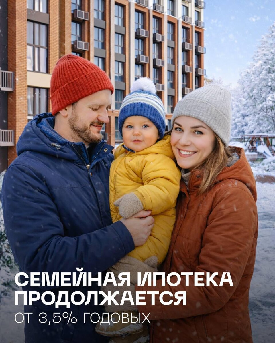 % Напоминаем, что если в вашей семье есть ребёнок, вы можете приобрести квартиру по программе семейной ипотеки на специальных условиях. Программа доступна для: — семей, где есть хотя бы один ребёнок младше 7 лет — семей с ребёнком-инвалидом Условия программы: — процентная ставка — от 3,5% — сумма кредита — до 6 млн ₽ — первоначальный взнос — от 20,1% Семейная ипотека действует на покупку квартир во всех наших жилых домах и комплексах. 📌 Обратите внимание: с 1 февраля 2026 года действует правило «одна семья — один льготный кредит». При оформлении договора супруги становятся созаёмщиками (за исключением отдельных случаев). Запишитесь на консультацию к нашему кредитному специалисту: 📞 +7 (4912) 707-000