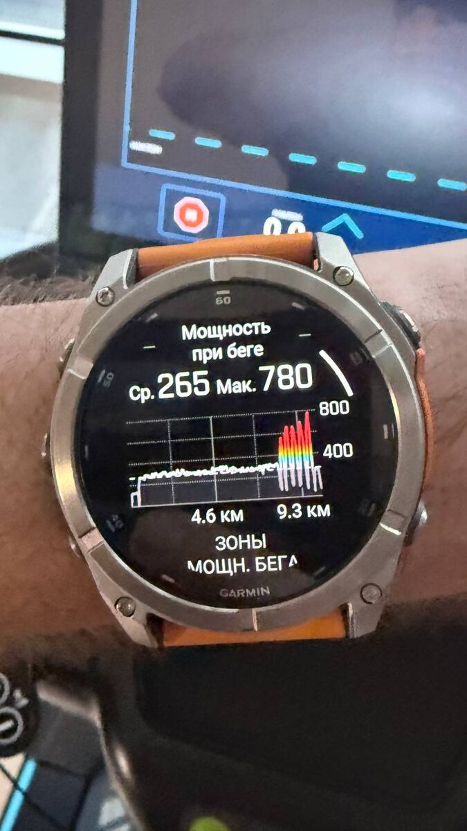 Т.е разминка, потом бег 50 минут во второй пульсовой зоне, потом 5 отрезков по 100 м на максималке и еще заминка 10 минут. Все шло по плану до момента с отрезками. Бег со скоростью 8,5 км/ час на пульсе 130 вообще легко и непринужденно. Бежали и разговаривали все время. Но вот отрезки по 100 м меня мягко говоря удивили сегодня. Даже не сами отрезки, а темп, с которым их пробежал. 2,05 мин/км ( почти 30 км/ч). При мощности 780 ватт . За тренировку усталость всего 13 % от первоначальных 100. Вот какой эффект дают гипоксические тренировки . Ну и немого витаминов 😁