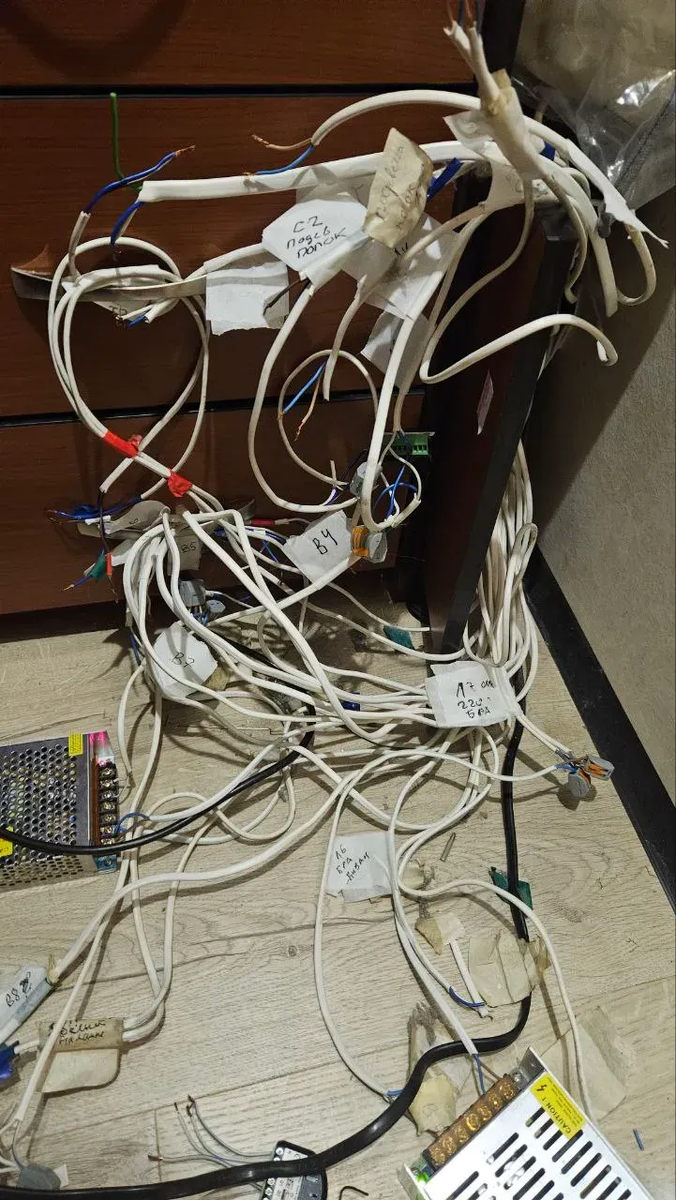 Когда то в этой квартире планировался умный дом на базе Z-wave, но что-то пошло не так. Я приехал прозвонить провода и определить источники свет … по классике мало что было подписано.