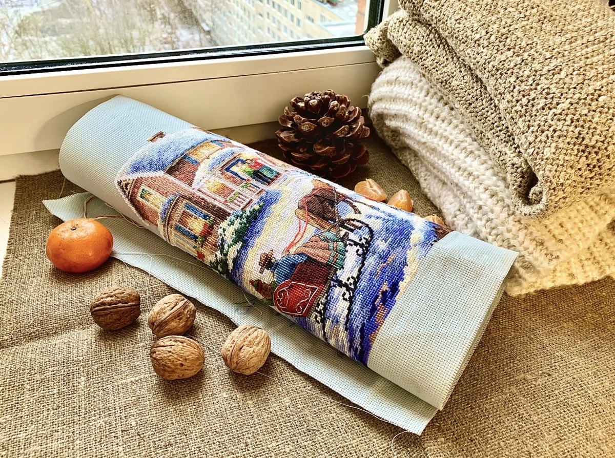 Февраль — интересный месяц. Холодный, короткий, но в нём всегда есть что-то тихое и уютное, особенно если проводить вечера с пяльцами в руках. Я решила посмотреть на свои февральские вышивки разных лет. И знаете, это оказалось удивительно интересно! Одни работы всплывают в памяти с теплом и радостью, а другие с лёгкой грустью и ностальгией. С каждым годом мои предпочтения менялись, но в целом можно проследить устойчивую динамику: зимние сюжеты, наборы, рулончики. Порой удивляюсь, как одни и те же руки могут по-разному проживать одно и то же увлечение. В этой статье я хочу поделиться с вами моими февральскими процессами, показать, что я вышивала в разные годы и рассказать маленькие истории, которые стоят за каждой работой. Сегодня коснёмся моих крестиков на первой неделе февраля. Зимний процесс от Дименшенс "Домой на праздники" В начале февраля 2020 года я активно вышивала зимний сюжет от Дименшенс. Тогда я очень часто вышивала этого производителя. По правде говоря, я вышивала Дименшен