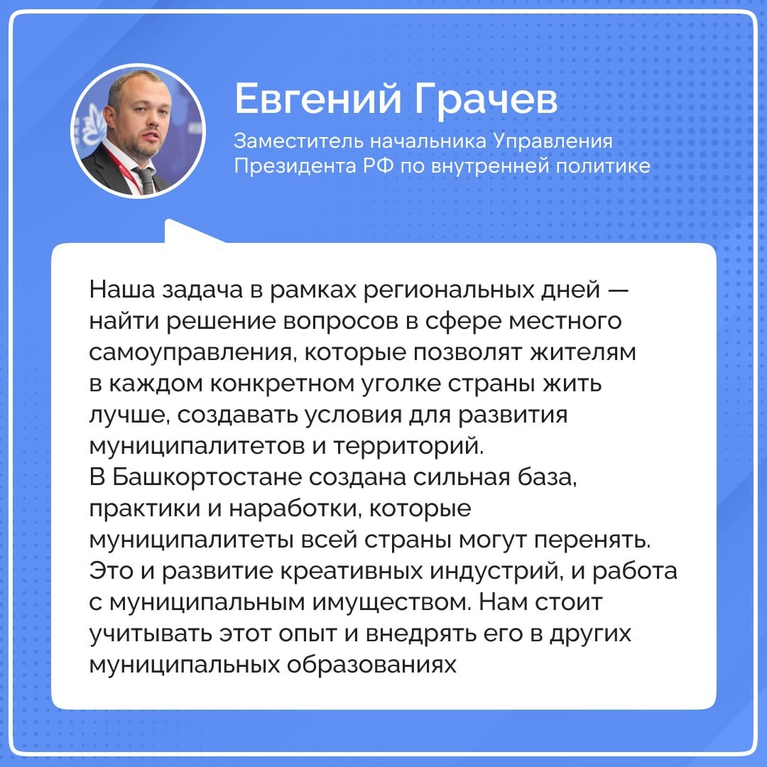 » в Республике Башкортостан. ВАРМСУ проводит пятые регдни из восьми запланированных в преддверии форума. Всего в Уфе собрались порядка 500 участников, чтобы обсудить тему «Муниципальный рост: новые драйверы развития». Республика Башкортостан выбрана площадкой для проведения региональных дней не случайно. В муниципалитетах представлены удачные практики развития экономики и цифровых технологий, которые будут полезны и другим регионам России. Подписаться | Написать нам | Дзен