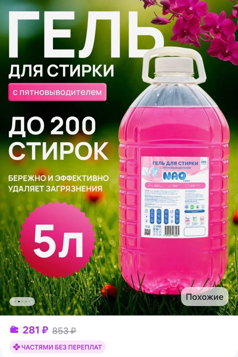 😀😀😀5 литров Nao Гель для стирки с ПЯТНОВЫВОДИТЕЛЕМ автомат
