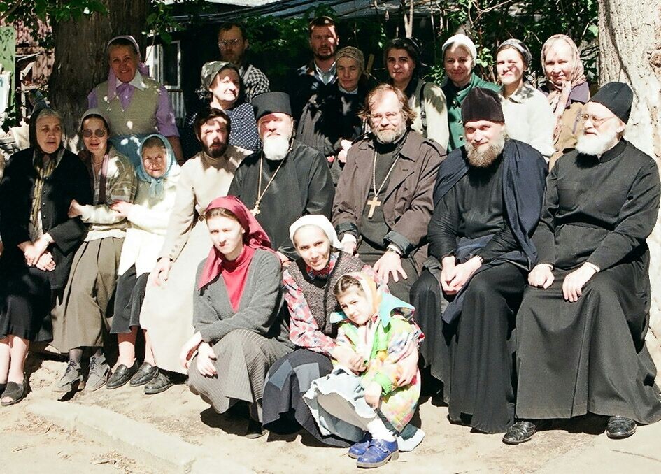 Отец Александр Куликов , настоятель храма на Маросейке, в окружении отца Николая, иеродиакона Илариона, алтарник и музыкант Адриан Александрович,слева ризничая Мария Ивановна. Внизу Екатерина- до сих пор регент и певчая. Отец Александр очень любил такие совместные фото во дворике храма.