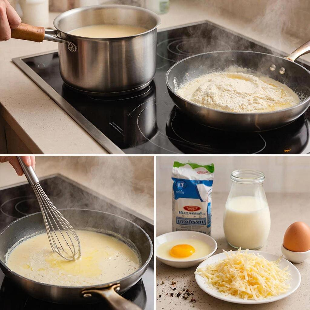 - Температура ингредиентов: Используйте холодное молоко для смешивания с ру, чтобы избежать комочков. Масло для добавления в конце должно быть комнатной температуры.