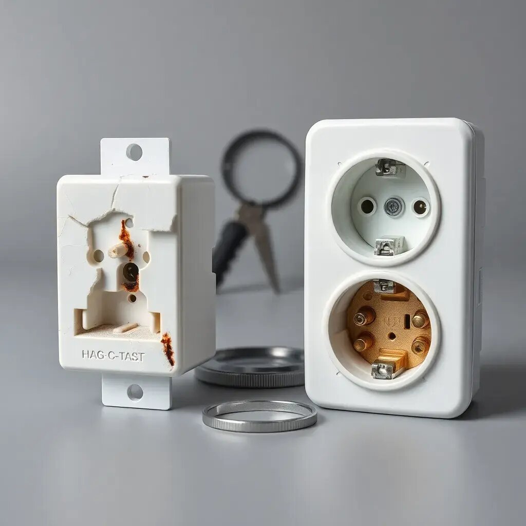 Привет! Вы уже знаете, как не перегрузить розетку и какой кабель проложить в стену. Но что, если сама розетка — слабое звено? Сегодня поговорим о том, какие розетки и выключатели действительно безопасны, как их выбирать — и почему экономия на них может обернуться искрами, запахом гари… или хуже. Снаружи они похожи: белый корпус, два отверстия, заземление. Но внутри — огромная разница: Да, всё это реально влияет на то, будет ли ваша розетка греться, искрить или даже гореть. Многие заказывают розетки с AliExpress, Wildberries или на рынках за 50–100 рублей. На первый взгляд — выгодно. Но: Дешёвые механизмы часто делают из цинка или железа с медным напылением. Со временем напыление стирается, сопротивление растёт → розетка греется, особенно под нагрузкой (утюг, чайник). Корпус из дешёвого пластика не выдерживает высоких температур. При перегреве он трескается, деформируется — и оголённые контакты становятся доступны. У качественных брендов есть сертификаты пожарной безопасности (например,