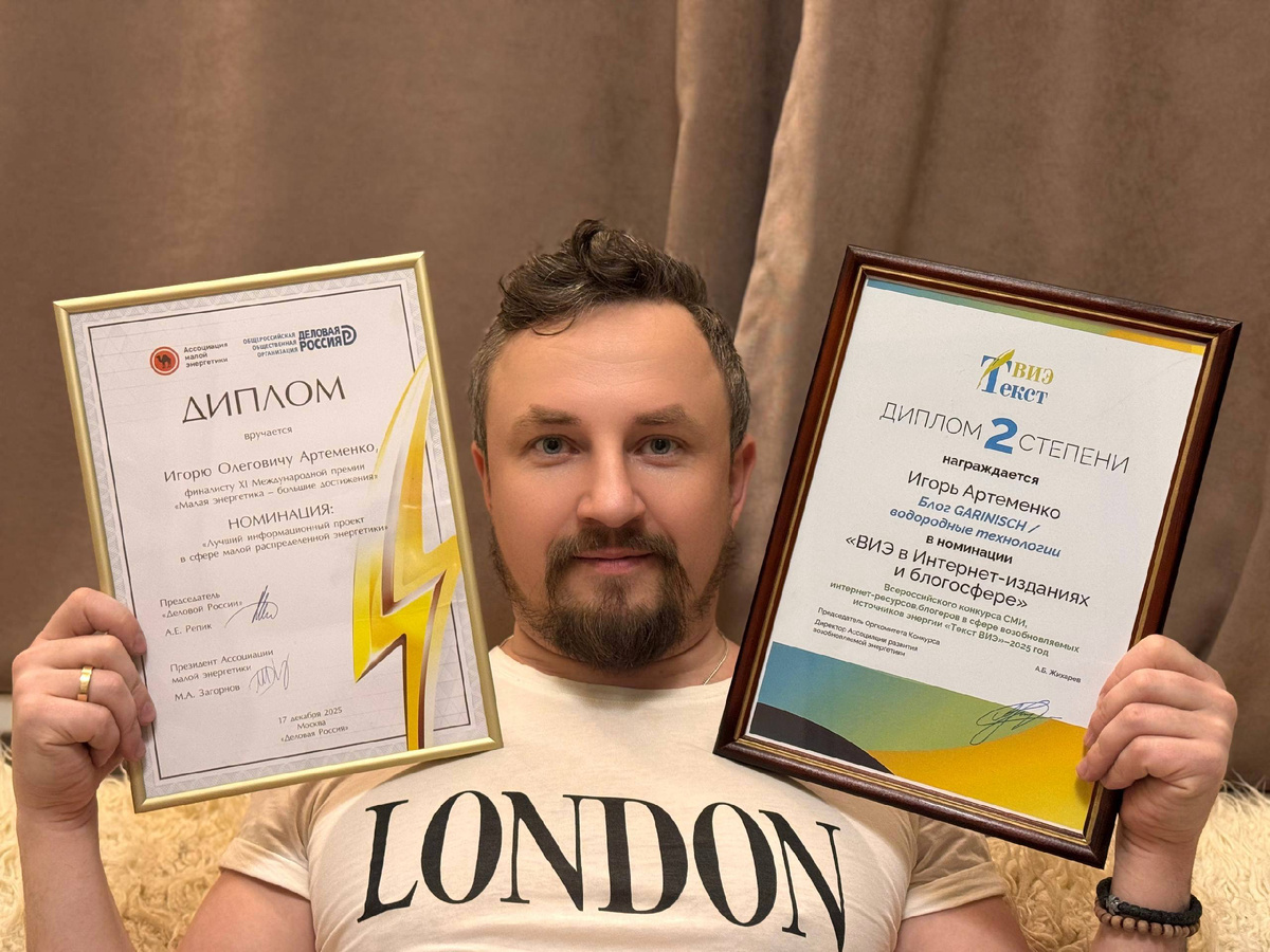 Друзья забыл поделиться новостью, блог GARINISCH в 2025 году получил награды от Ассоциации возобновляемой энергетики заняв второе место и стал финалистом международной премии от Ассоциации малой энергетики.