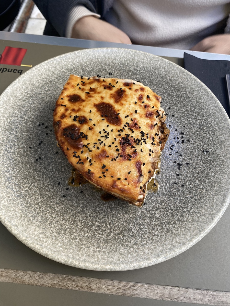 Давно я не писала, потому что не было настроения для письма. А без настроения не пишется. Но сейчас вроде бы вдохновение вновь меня посетило, поэтому я продолжу рассказывать про нашу поездку в Грецию и новости из Венгрии. Меня зовут Анастасия. В 2020 переехала к мужу в Будапешт. Работаю онлайн-преподавателем английского языка с учениками из России и параллельно развиваю свой бренд ??? ручной работы в Европе. На своем канале рассказываю о своей РЕАЛЬНОЙ, а не нельзяграмной жизни в Венгрии. Подписывайтесь! Снова по отзывам выбрали ресторан и пошли на обед. Ресторан открылся ровно в 13.00. Мы подошли к этому времени и стали первыми гостями. Муж закал мусаку с баклажанами. Мусака похожа на запеканку из картофеля, фарша и сыра. А я заказала куриную грудку со сливовым соусом и пюре из греческого ореха. Порция выглядит огромной, но на самом деле это не так. Пюре просто размазано толщиной в 3 мм. И я сомневаюсь, что оно из грецкого ореха, если честно. Было очень похоже на картофель. Я ела ка