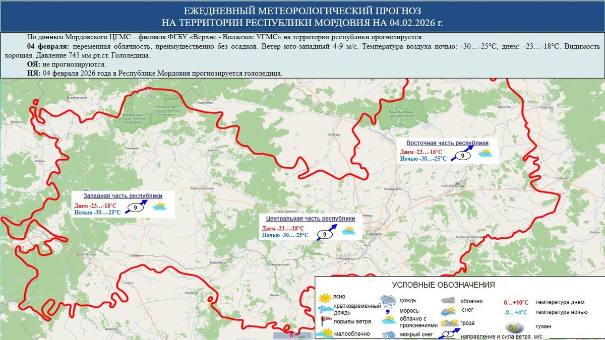 ☁️⛅⛈️ 4 февраля в Мордовии переменная облачность, преимущественно без осадков, гололедица