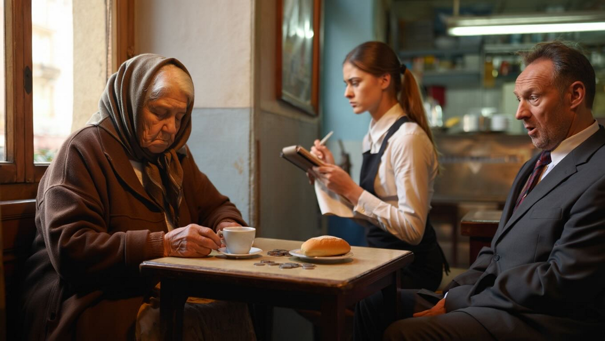 Дверь кафе открылась, и внутрь вошла пожилая женщина. Маленькая, сутулая, в потёртом пальто. Она неуверенно огляделась по сторонам, будто впервые попала в подобное заведение.