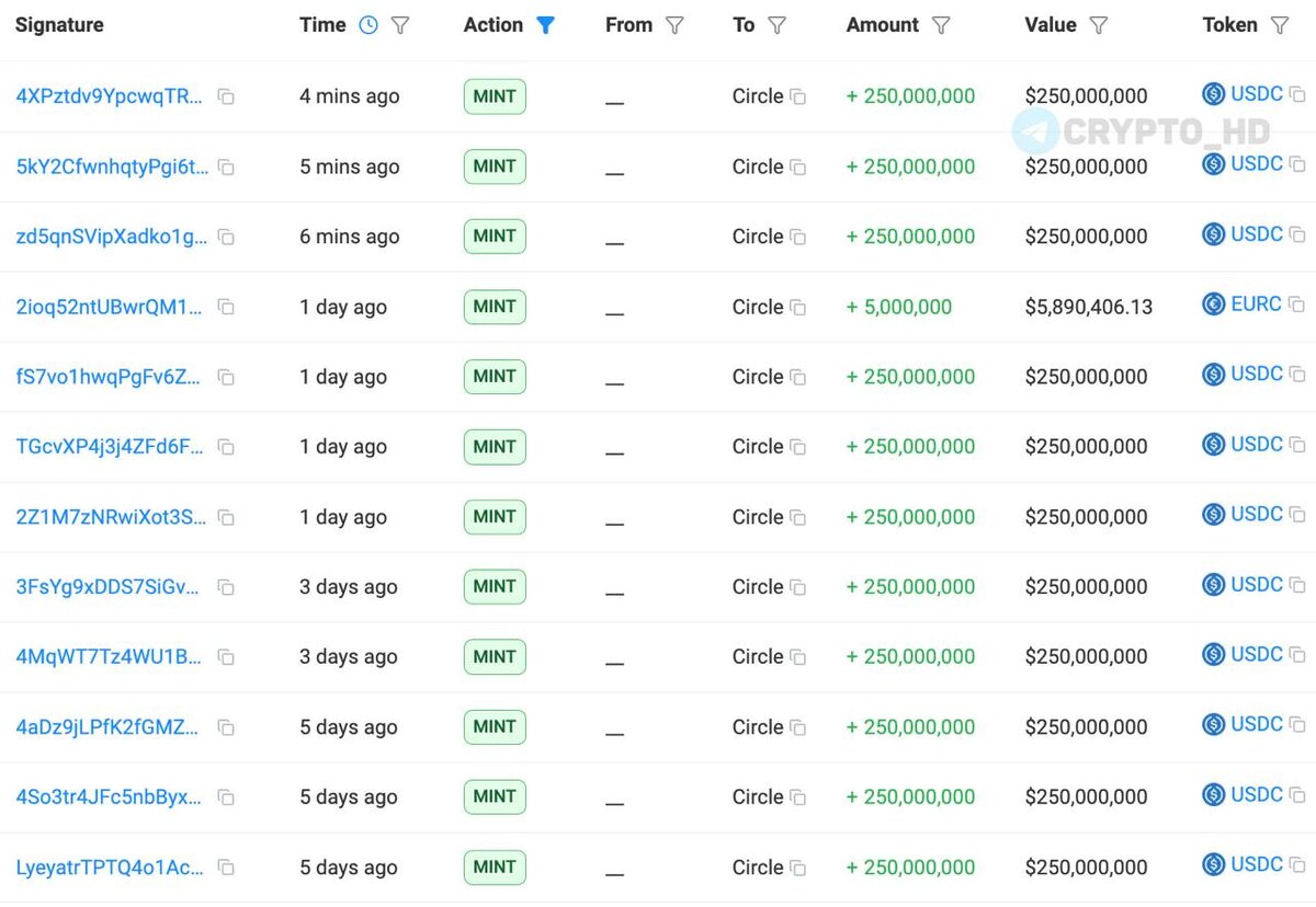 🤔 В Circle напечатали #USDC на $2,750,000,000 за последнюю неделю.