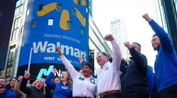 Ритейлер вошёл в клуб, в котором доминируют гиганты высоких технологий. На фото: Сотрудники Walmart празднуют во время церемонии открытия торгов на бирже Nasdaq в честь перехода компании на биржу, Нью-Йорк, США, 9 декабря 2025 года. REUTERS Walmart во вторник, 3 февраля, стал первым ритейлером в истории, рыночная капитализация которого достигла 1 триллиона долларов, чему способствовал годичный рост ее акций почти на 26%, что позволило ей войти в число таких гигантов технологического сектора, как Nvidia и Alphabet. Взлет Walmart примечателен тем, что компании удалось сочетать привлечение покупателей с высоким доходом, ищущих выгодные цены и удобство, с сохранением основной базы покупателей с низким доходом. За последнее десятилетие акции компании выросли на 468%, опередив рост индекса S&P 500 на 264%, отчасти благодаря этой двойной стратегии, которую конкурентам пока не удается повторить. За последние пять лет ритейлер расширил свой онлайн-рынок до более чем полумиллиарда товаров, запус