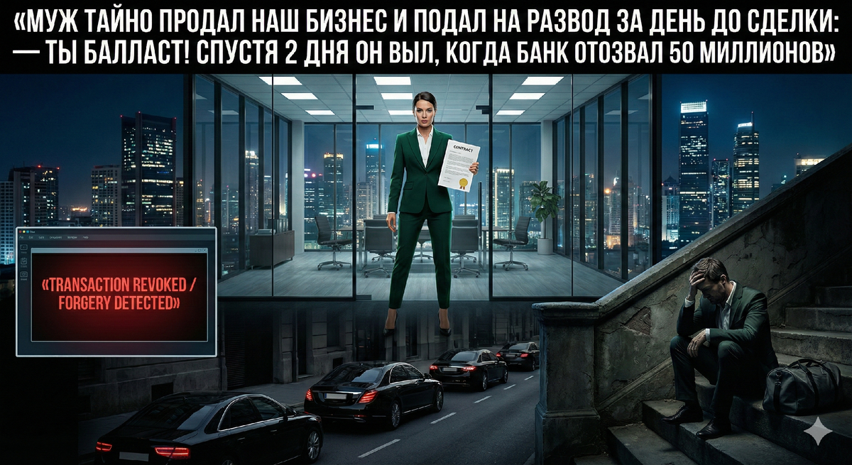 Логика Сергея была циничной и простой: он подает на развод за час до сделки, утверждая, что бизнес — это его «личное достижение», созданное на базе его патентов (которые он тайно переоформил на себя месяц назад), а я — лишь наемный работник с минимальной долей, от которой он избавляется. При разводе он планировал откупиться от меня парой миллионов, оставив себе все сливки от продажи.