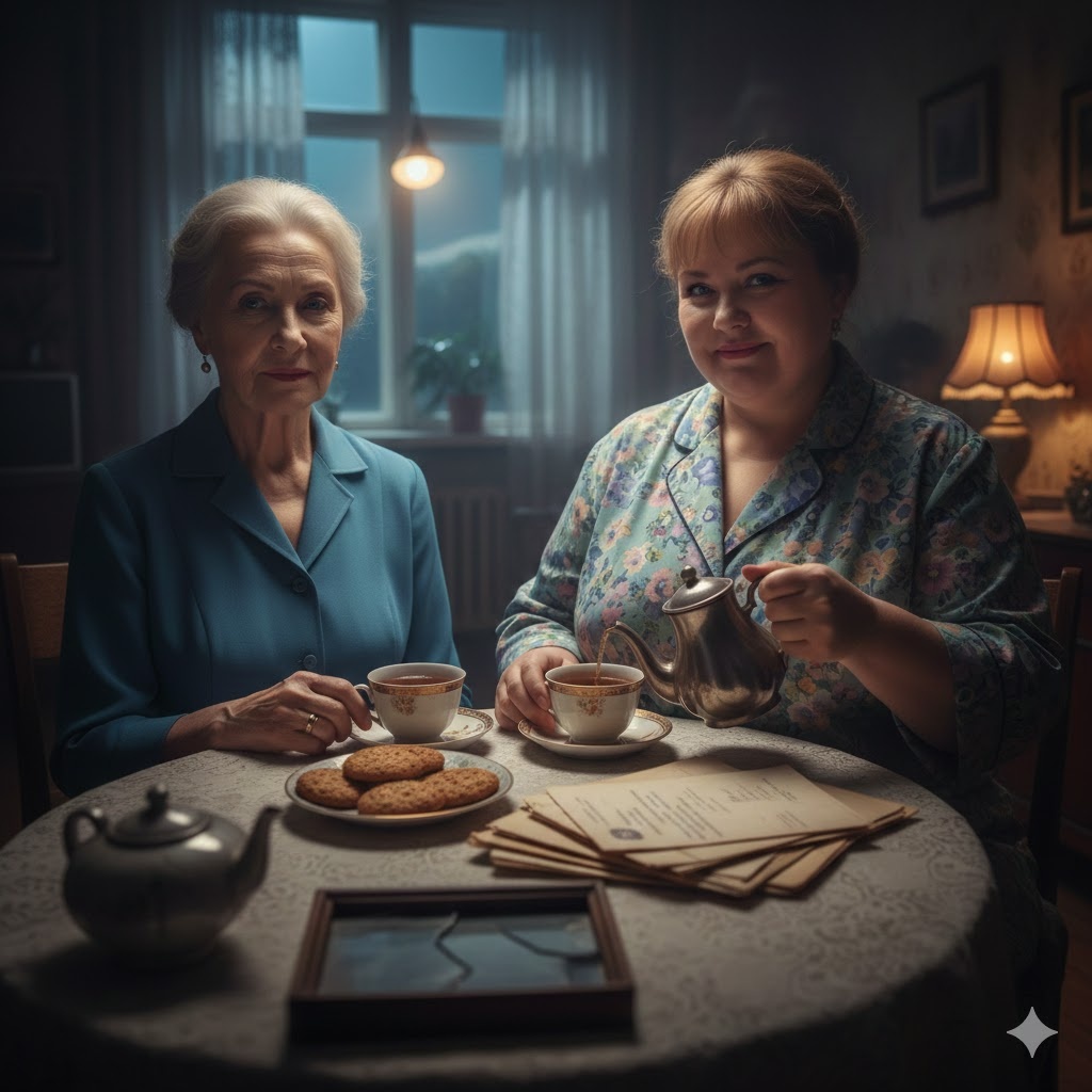 Антонина Павловна вздрогнула. Слово «чай» всё еще вызывало у неё легкий холодок в груди. Но когда сын вошел в комнату, неся на подносе две большие кружки с забавными рисунками лосей (привез-таки из Канады), она улыбнулась.