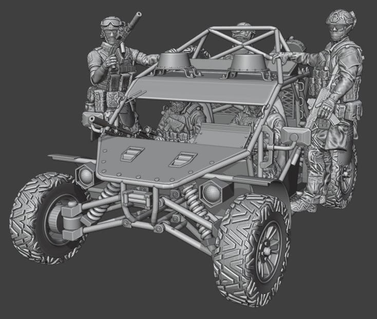 Finsbench выпустили модели Багги "Дезерткросс" и Багги тип 2 в масштабе 1/35. - Багги "Дезерткросс" В базовой версии без фигурок. При заказе указывать открытая рампа или нет. - Багги тип 2 комплектуется 5ю солдатами, АГСом, РЭБом и рюкзаком.