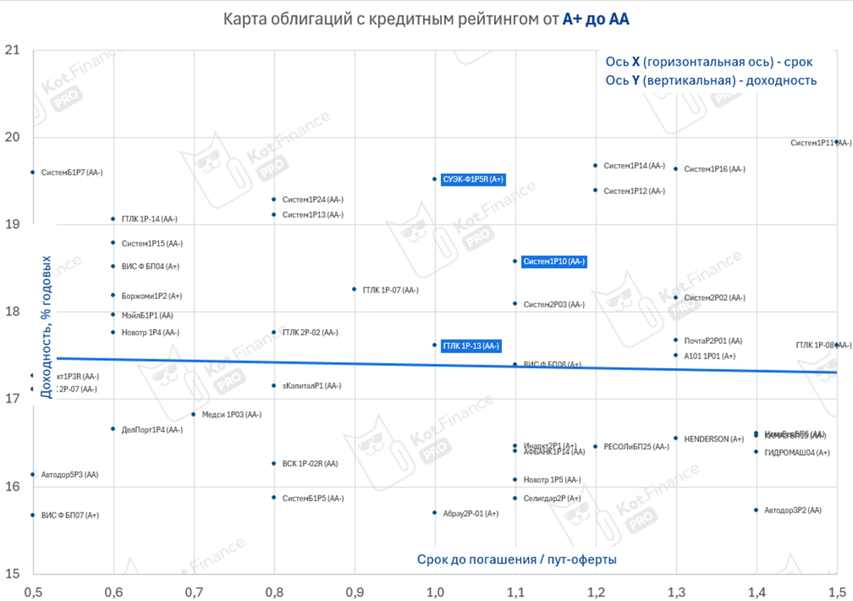 Мы щепетильно относимся к офертам и даже сделали проект 🗓Календарь оферт, чтобы никто не пропускал важные. Покупка офертных бумаг дает дополнительные 1-2% доходности, но порой, если пропустить важную – можно одним днем потерять -40%. Также мы ведем 🤬Black-list эмитентов, которые регулярно ставят нерыночные купоны (например 0,1%) РЕСО-ЛИЗИНГ-БО-П-16 ISIN: RU000A10AV23 Ставка после оферты: 14,6%, ежемесячный купон Следующая оферта через год Итого: фикс на 1 год ежемесячным купоном и эффективной доходностью ~15,3% годовых. У РЕСО-Лизинг кредитный рейтинг АА- 👉Наши обзоры: Евротранс, Оил Ресурс, АФК Система, Самолёт, Монополия, и другие Среди аналогов сного вариантов с тем же сроком и доходностью 17,5-19,5%: 🔹 СУЭК-Ф1P5R RU000A101CQ4 19,5% 🔹 Систем1P10 RU000A1008J4 18,6% 🔹 ГТЛК 1P-13 RU000A1003A4 17,6% А если не привязываться к сроку – вариантов ещё больше! Ну вы и сами видите на карте. Что делать со своими облигациями и участвовать ли в оферте – решать вам! 📘Почитать по теме: 🗓Кал