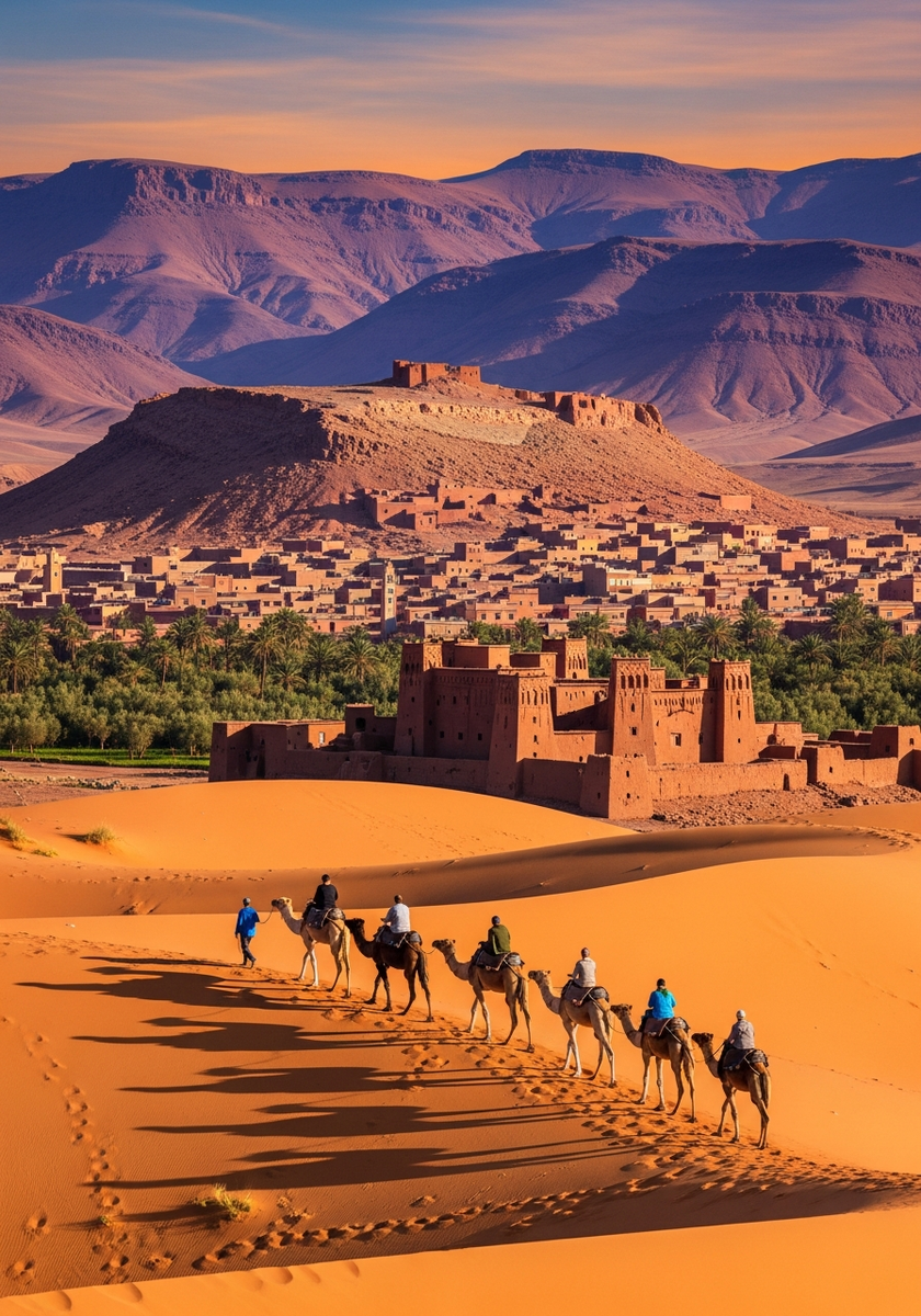 Здесь можно прокатиться на верблюдах на закате, когда песок окрашивается в огненно-красные оттенки, переночевать в берберском лагере под звездным небом, попробовать сэндбординг. Рассвет в пустыне — волшебное зрелище, когда первые лучи солнца пробуждают барханы к жизни.