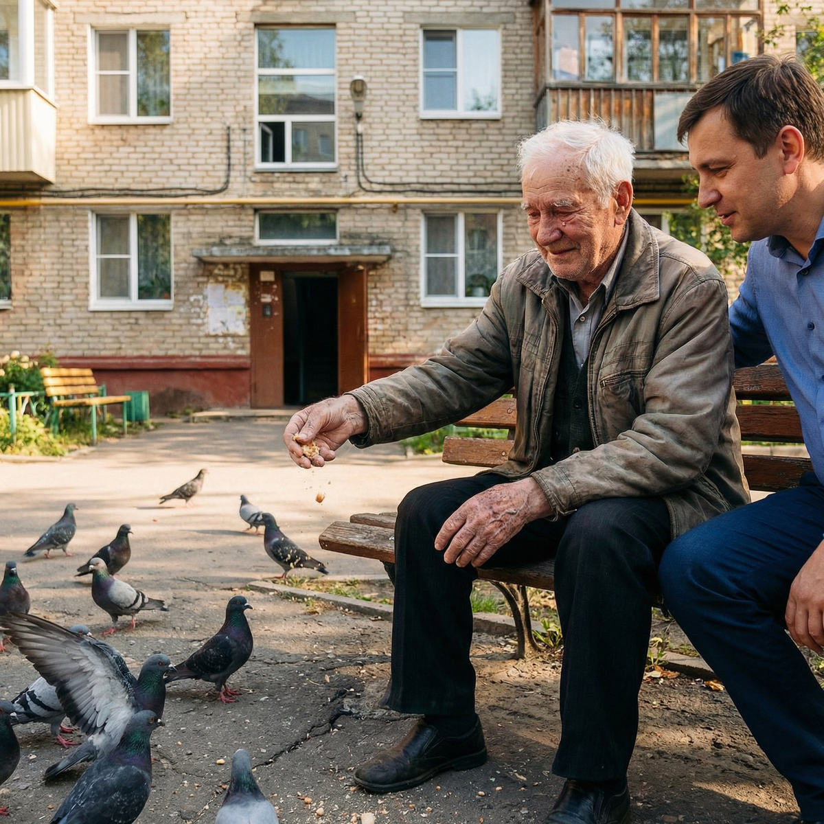 Я встретил Виктора Ильича, когда он сидел на старой скамейке в парке и кормил голубей. Ему 82 года. У него ясные, хоть и немного слезящиеся глаза, и руки, испещренные венозной сеткой и пигментными пятнами. Рядом с ним не было никого, но ощущение одиночества от него не исходило.
