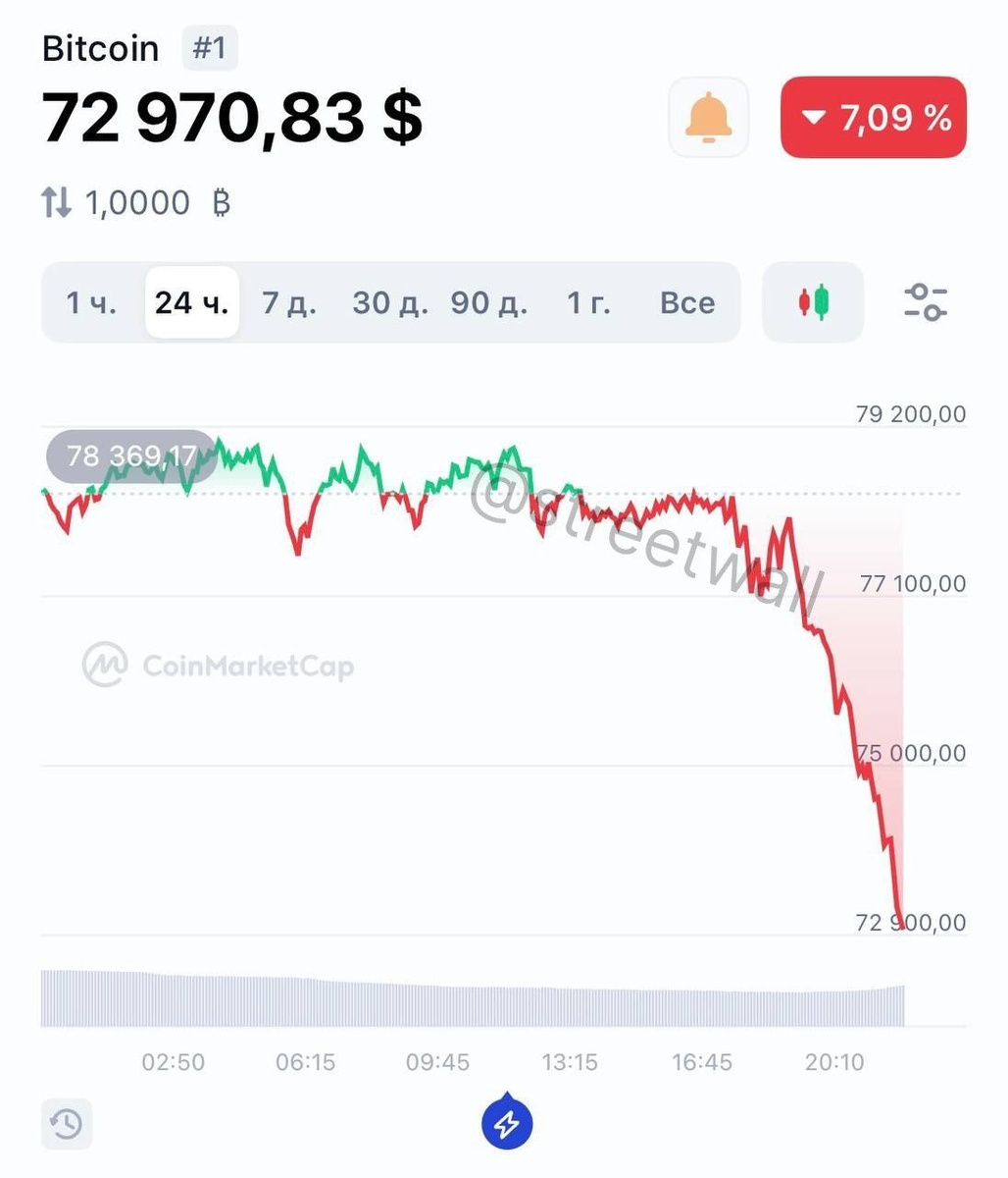 Биткоин уже ниже $73 000.