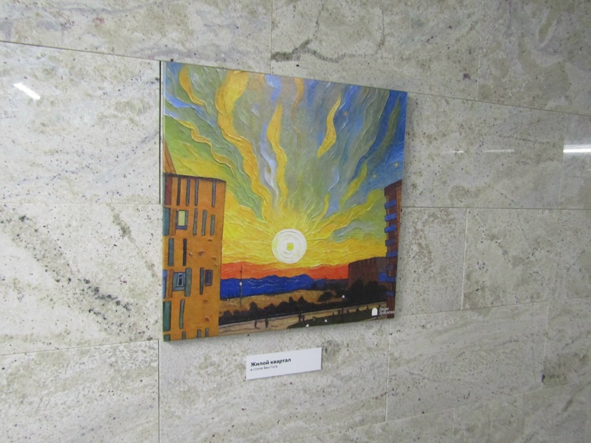 В подземных переходах (зачем там подземные переходы?) располагается выставка работ нейросети, посвящённая любимому городу.