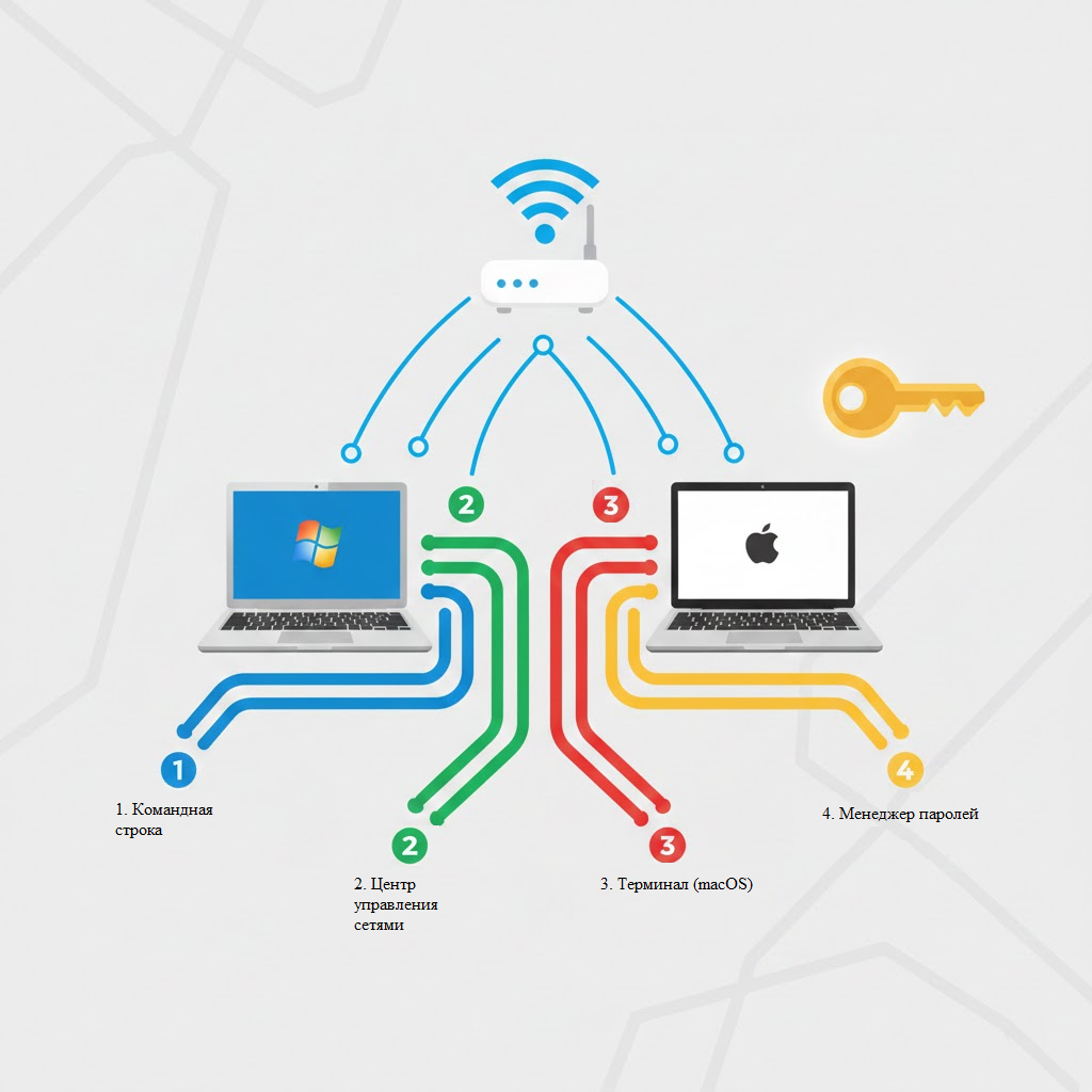 Знакомая ситуация: нужно подключить к Wi-Fi новый смартфон, планшет или пришли гости, а пароль от сети, который вы когда-то вводили, давно стёрся из памяти. Лезть в настройки роутера или, что хуже, делать сброс — неудобно и долго. Но есть хорошая новость: если хотя бы один компьютер в доме уже подключён к этой сети, пароль от Wi-Fi хранится прямо в его системе. Мы покажем, как его найти быстро, безопасно и абсолютно легально.