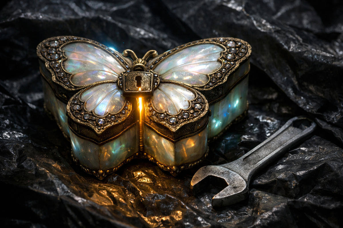 Шкатулка. Деревянная, тёмная, инкрустированная перламутром. Замок — маленький, фигурный, похожий на бабочку. Он видел эту шкатулку в детстве. Бабушка держала её в серванте, никогда не открывала при нём. Однажды он спросил — что внутри? Она улыбнулась и сказала: «Потом узнаешь, Костенька. Когда вырастешь».
