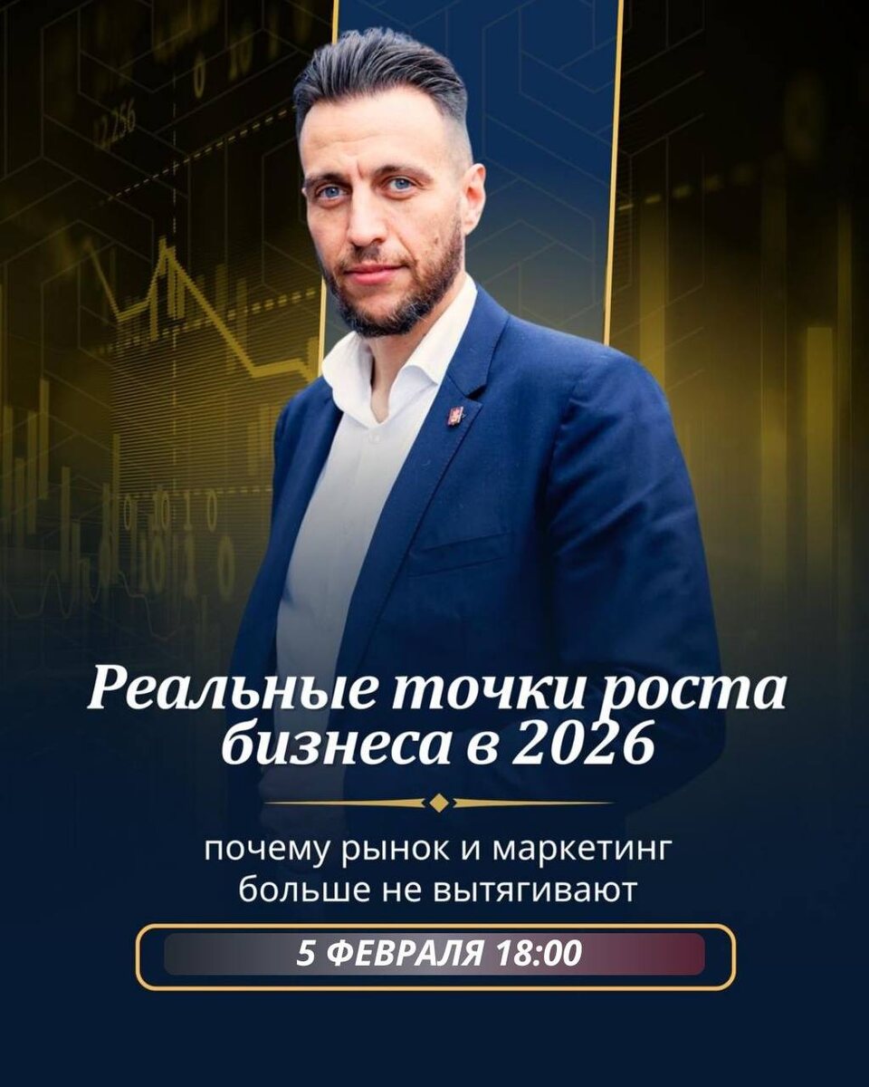 РЕАЛЬНЫЕ ТОЧКИ РОСТА БИЗНЕСА В 2026 Большинство бизнесов сегодня не в кризисе. Они упёрлись в потолок. Инструментов стало больше. Маркетинг — дороже. Команд — больше. А рост — всё сложнее. Потому что рынок больше не тянет. 5 февраля проведём открытый прямой эфир - честный разговор о том, что реально происходит с бизнесом и где находятся точки роста после рынка. О чём будем говорить: - где именно бизнесы упираются в потолок - почему маркетинг и конкуренция перестают работать - какие модели роста становятся устойчивыми в 2026 - что приходит на смену «рыночному росту» Это не эфир про мотивацию и не «как заработать больше». Это разговор про смену логики роста и бизнес за пределами конкуренции. Прямой эфир 5 февраля | 18:00 (МСК) Участники получат практическую диагностику своего бизнеса в логике 2026 года. Участники эфира: Даниил Воловиков Лучший инвестор 2025 года по версии МТПП Ex-эксперт Банка России Член Совета акционеров ВТБ Георгий Бурлаков Эксперт в коммуникациях и GR Стр