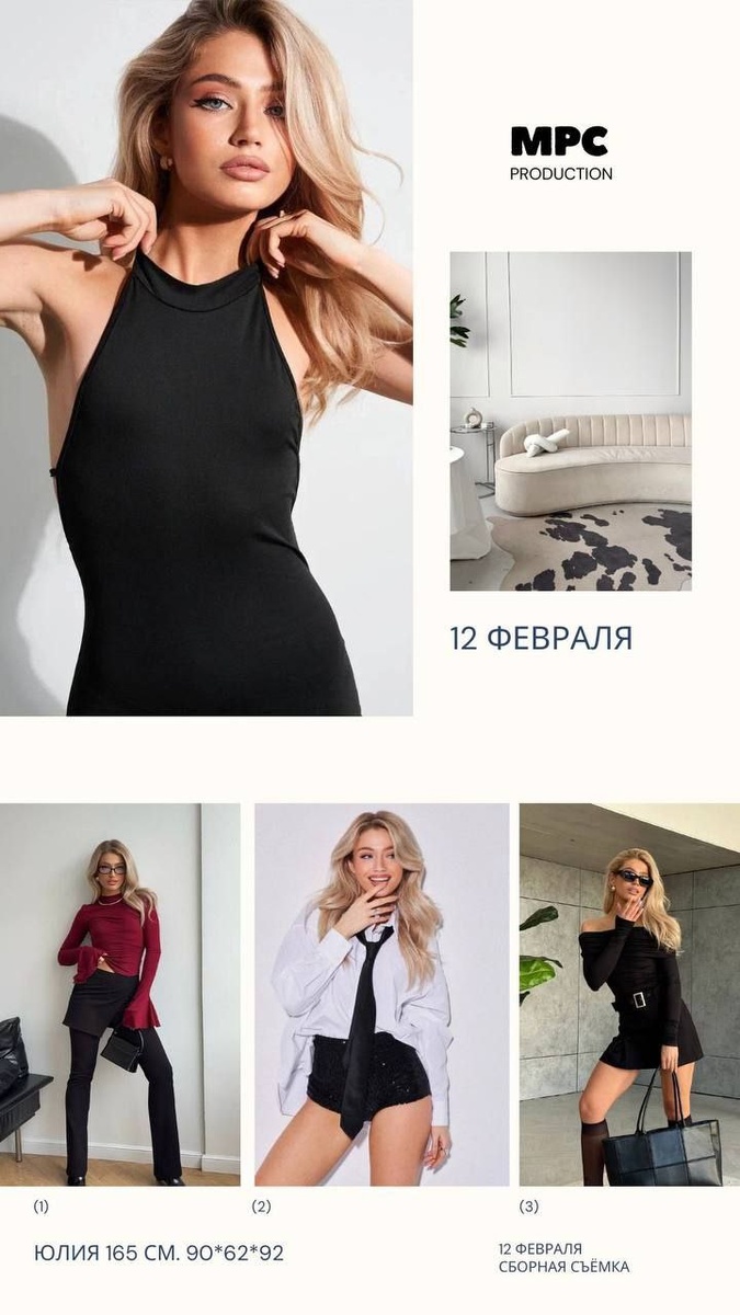! ✨ Модель Юлия ждёт Вас! Рост: 165 см Параметры: 90/62/92 📌Выбирайте локацию: ✔ Белый или серый фон ✔ Стильный интерьер (см. фото в анонсе) 📎Наши пакеты: Каталог: 2 900 р. за 1 артикул (15 фото). MPCstudio: 8 000 р. — максимум сервиса! СПЕЦИАЛЬНОЕ ПРЕДЛОЖЕНИЕ - СЛОЖНЫЙ СВЕТ БЕЗ ДОПЛАТ ❗️ 🎁 Бонус: от 5 артикулов = видеорилс в подарок! Не упустите шанс! Пишите менеджеру: @mpcont_help Портфолио и отзывы — по ссылке: https://t.me/mpcontent_result