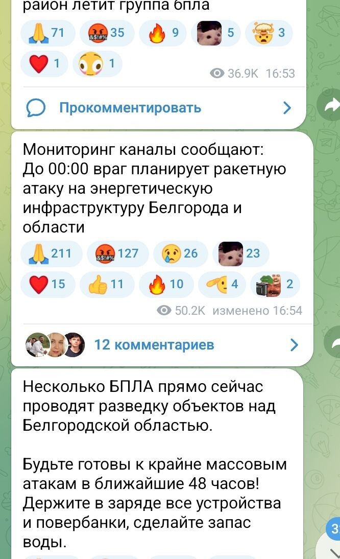 Постоянно сирены, сбития, бах, бах. С работы, уехала на 15 минут раньше. Заправилась. До этого читала предупреждение.