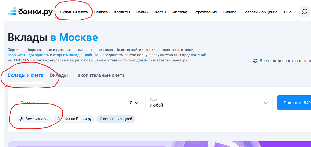 Накопительный счет —можно снимать и пополнять любую сумму. Процент меньше, чем на вкладе Вклады - это заморозка ваших средств на определенный срок. Есть вклады с пополнение без снятия, процент чуть больше, чем на накопительном счете. Есть без пополнения и без снятия, процент выше Накопительный счет лучше открывать, когда вы только начинаете копить, так как можно открывать на любую сумму. На вклады переходите, когда вы накопили определенную сумму. В каждом банке разная минимальная ставка для вклада. В одном банке минимальная сумма может быть от 10 000 руб, а в другом банке от 100 000 рублей. Есть возможность выбрать самим, в каком банке больше процент по счету или вкладу. Заходим на сайт https://www.banki.ru, сверху слева выбираем Вклады и счета Вклады и счета - все фильтры В фильтрах заполняем ячейки: Сумма - набираете сумму, которую можете внести в данный момент. Срок - выбираем в зависимости от ваших возможностей, если можете накопить за год. Значит указываем 1 год Банки - если вы