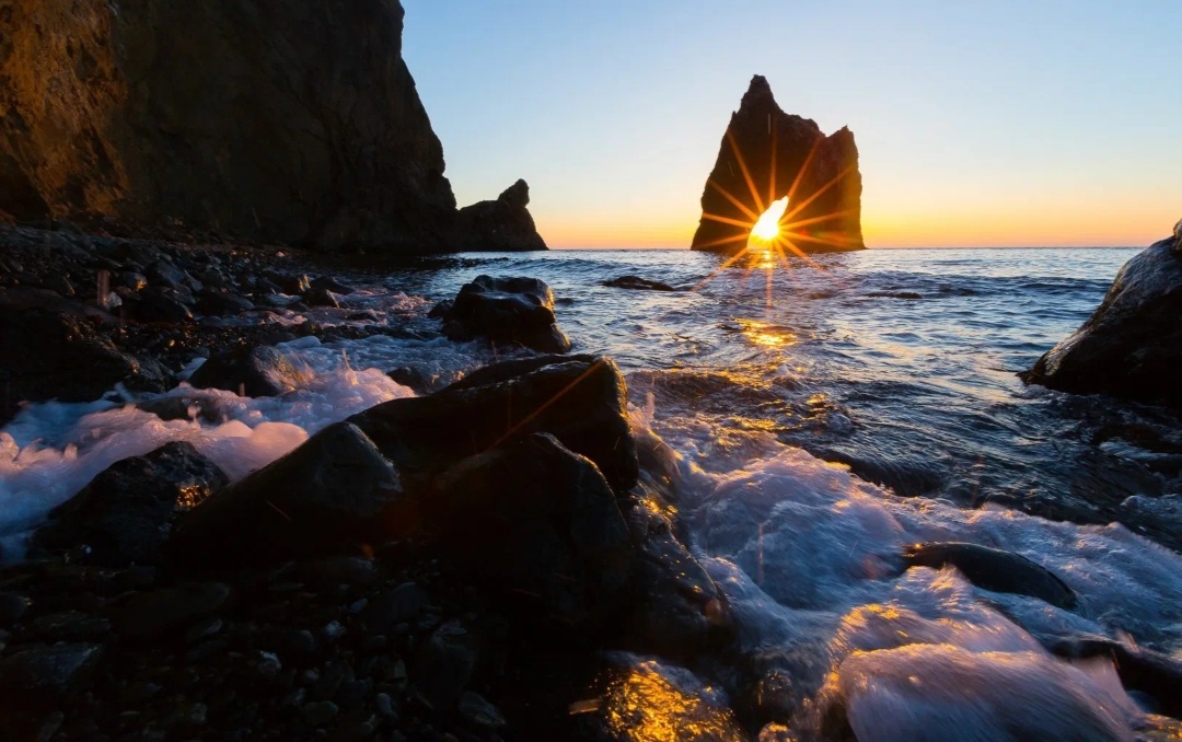 ⛰️ Золотые ворота — это скала-одиночка, оторвавшаяся от Карадагского массива и движущаяся в море.