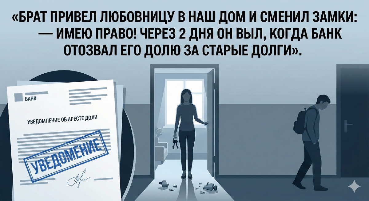 Но он совершил фатальную ошибку: он не платил по счетам уже полгода, надеясь на процедуру банкротства, при которой «единственное жилье» не отбирают. Вот только квартира не была его единственным жильем — по документам он до сих пор был прописан у нашей бабушки в деревне, а здесь владел лишь долей.