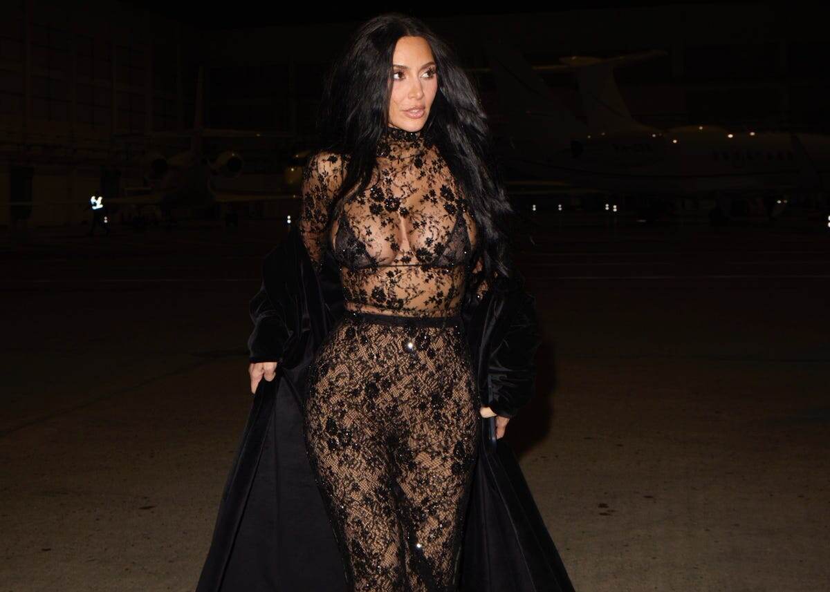 Основательница Skims появилась в Париже в наряде, который облегал ее прозрачным блестящим кружевом. Ансамбль состоял из комбинезона с длинными рукавами и высоким воротником, который был сделан из полностью прозрачного черного кружева с цветочным узором из пайеток. Под комбинезоном Кардашьян представила свою собственную марку нижнего белья Skims, надев треугольный бралетт. В качестве нижней части наряда она подобрала к комбинезону кружевные колготки и остроносые ботинки с прозрачной кружевной сеткой. Чтобы не замерзнуть, звезда реалити-шоу добавила к наряду длинное черное пальто, которое развевалось, как плащ, когда она прогуливалась по парижским улицам. По сообщениям, Кардашьян находится в городе со своим новым бойфрендом, гонщиком Формулы-1 Льюисом Хэмилтоном. В понедельник TMZ опубликовал видео, на котором двое прибывают на одной машине в отель в Париже после совместной поездки в Котсуолдс в Великобритании. Источник сообщил: "Это была романтическая встреча". До того, как появились с